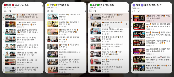 집에서 홈트를 하시는 경우 제 체널 내에 있는 공복, 초급, 중급, 상급 운동을 따라해 보세요