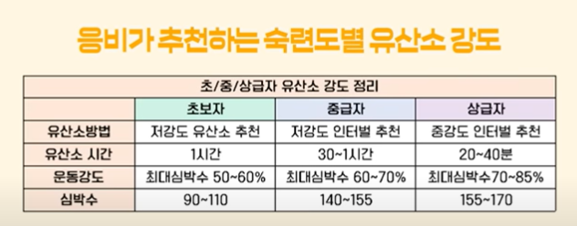 유산소 운동 강도의 경우에는 근력운동에 맞춰서 변경해 줘야 합니다